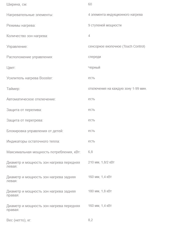 Конфорок индукционных |
