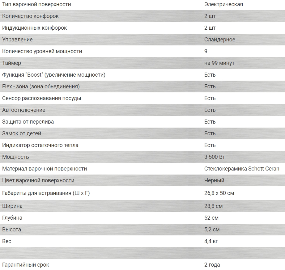 Ширина варочной поверхности |
