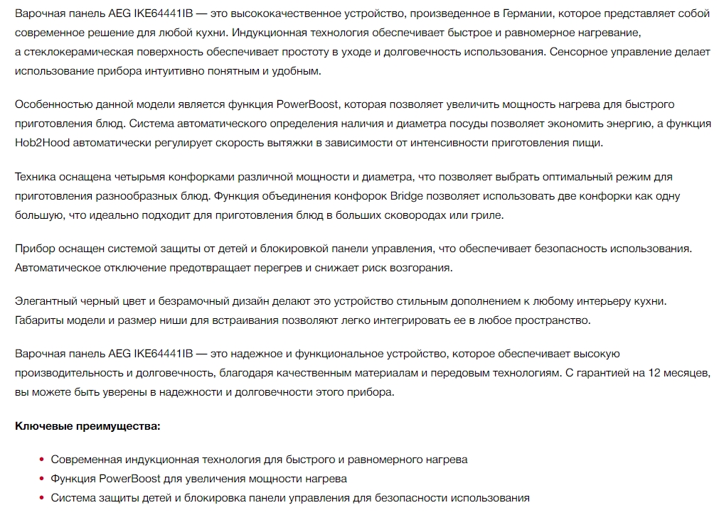 Индукционная варочная панель AEG (АЕГ) IKE64441IB