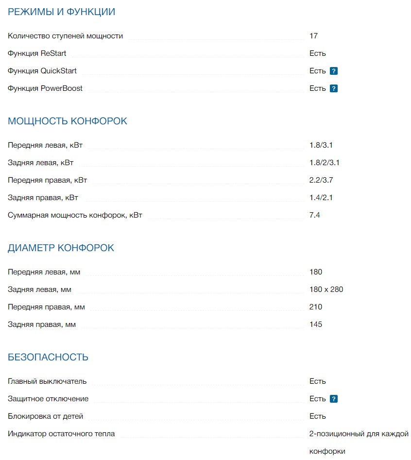 Конфорок индукционных |