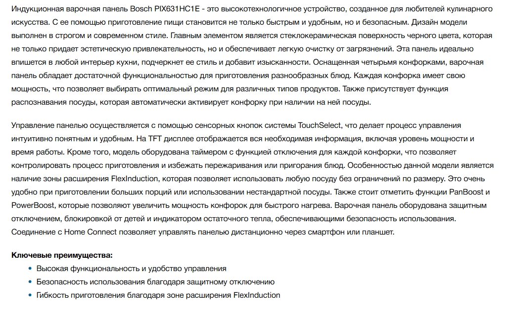 Индукционная варочная панель Bosch (Бош) PIX631HC1E