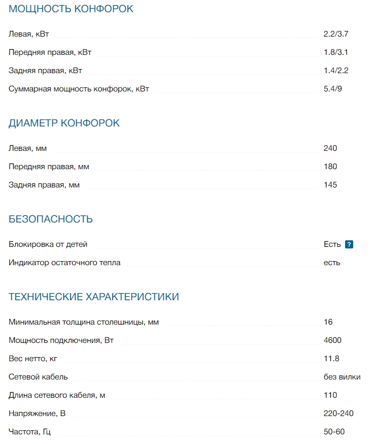 Конфорок индукционных |