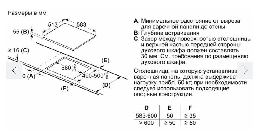 Размер ниши для встраивания (ШхГ) |