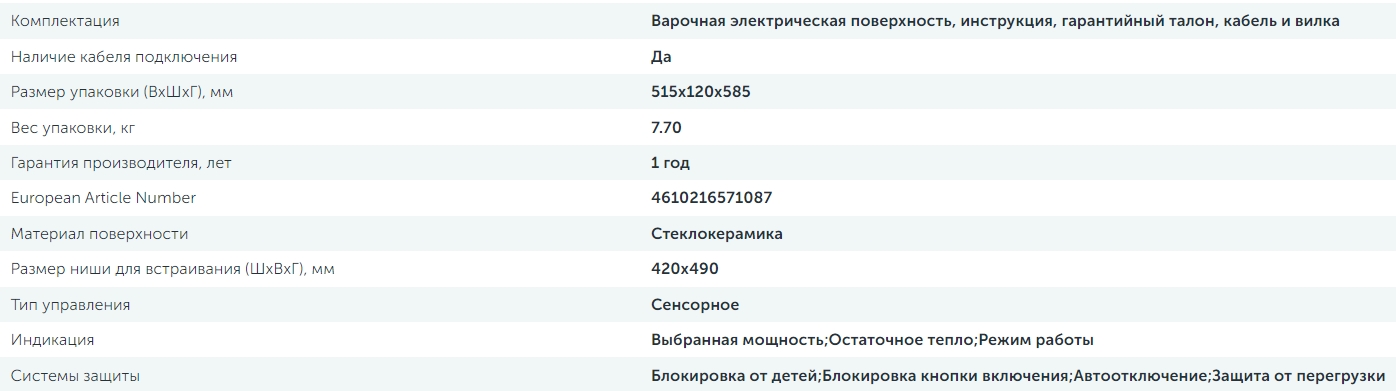 Конфорок индукционных |