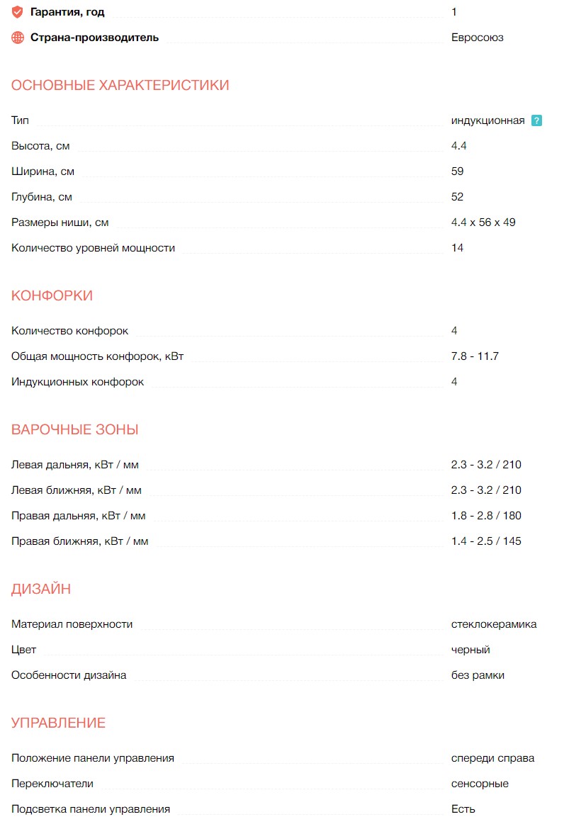 Конфорок индукционных |