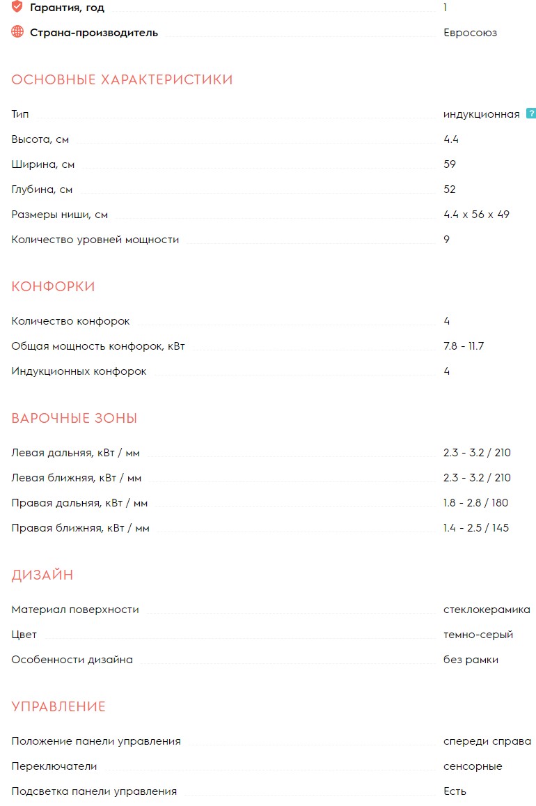 Конфорок индукционных |