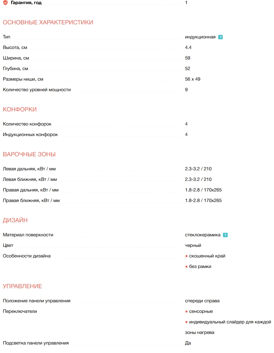 Конфорок индукционных |