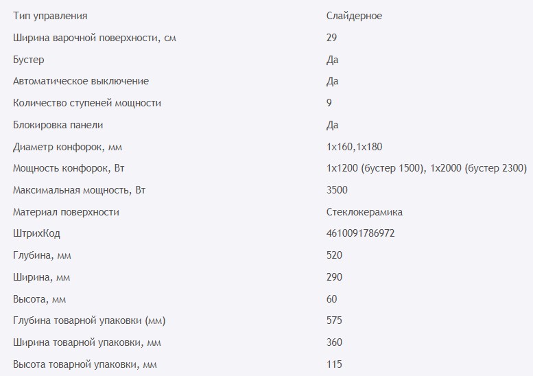 Конфорок индукционных |