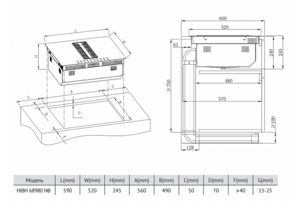 Размер ниши для встраивания (ШхГ), см |