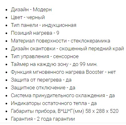 Конфорок индукционных |