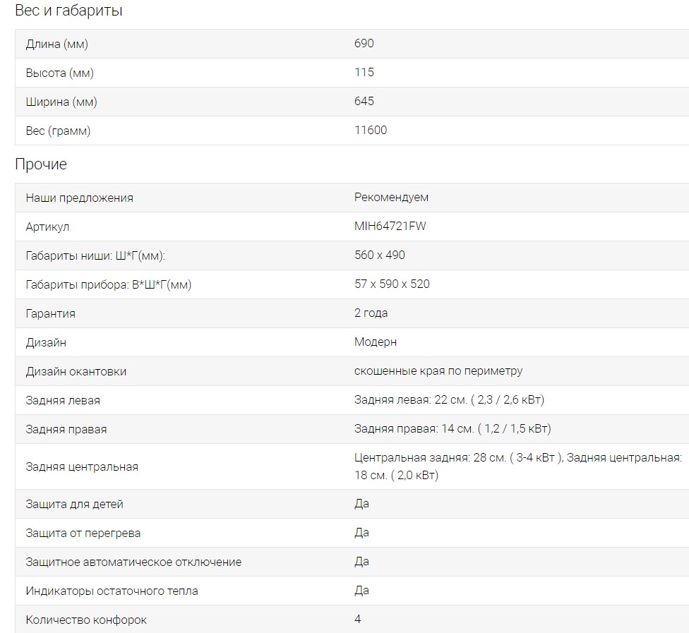 Конфорок индукционных |