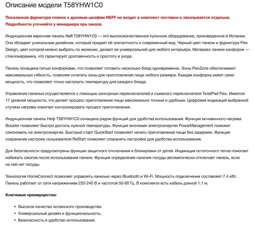 Индукционная варочная панель NEFF (Нефф) T58YHW1C0
