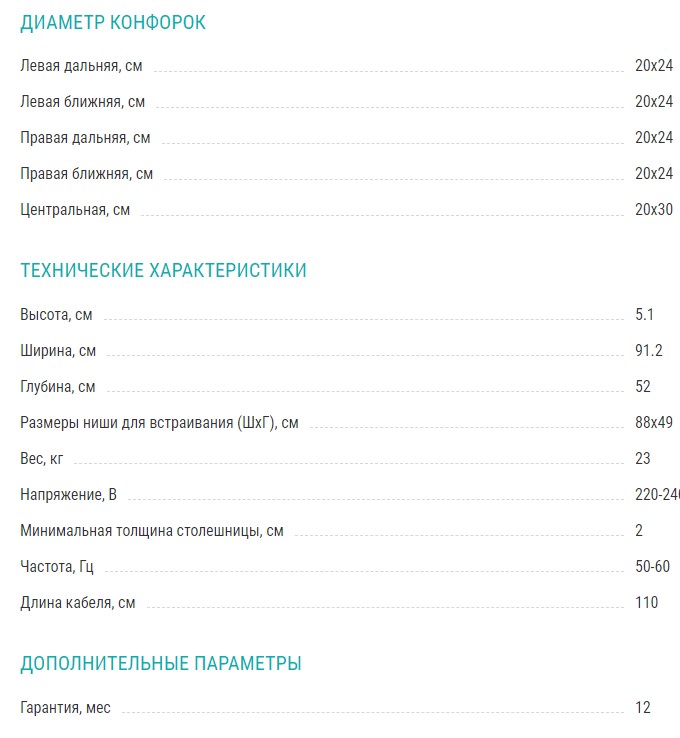 Конфорок индукционных |