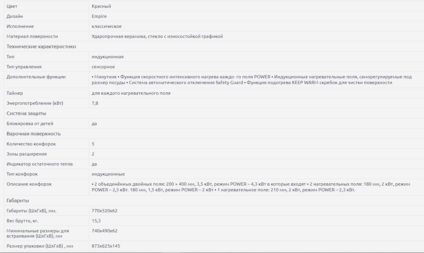 Конфорок индукционных |