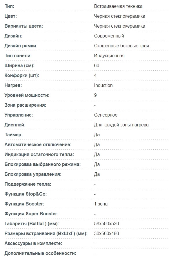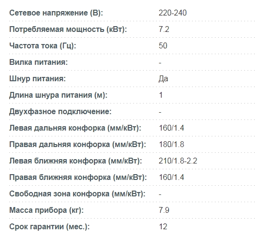 Конфорок индукционных |