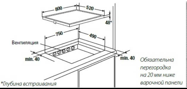 Глубина варочной