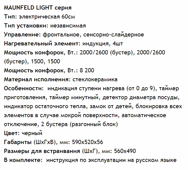 Индукционная варочная панель MAUNFELD (Маунфилд) EVI.594F-BK