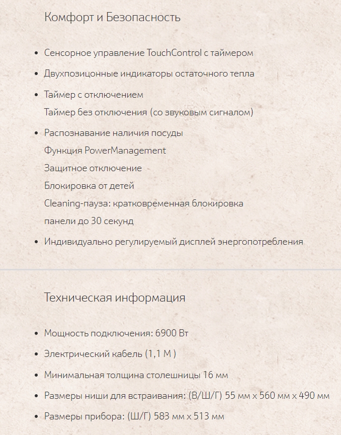 Глубина варочной