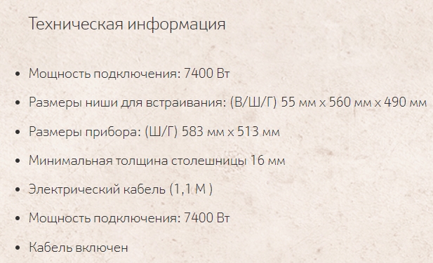 Глубина варочной