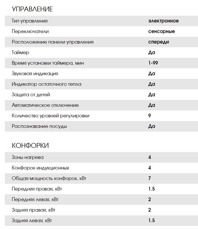 Конфорок индукционных |