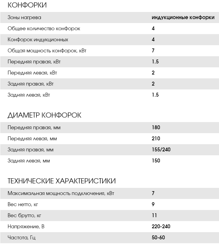 Конфорок индукционных |
