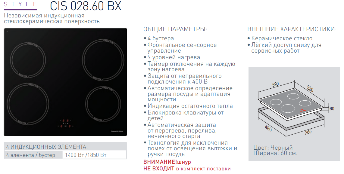 Индукционная варочная панель Zigmund-Shtain (Зигмунд-Штайн) CIS 028.60 BX