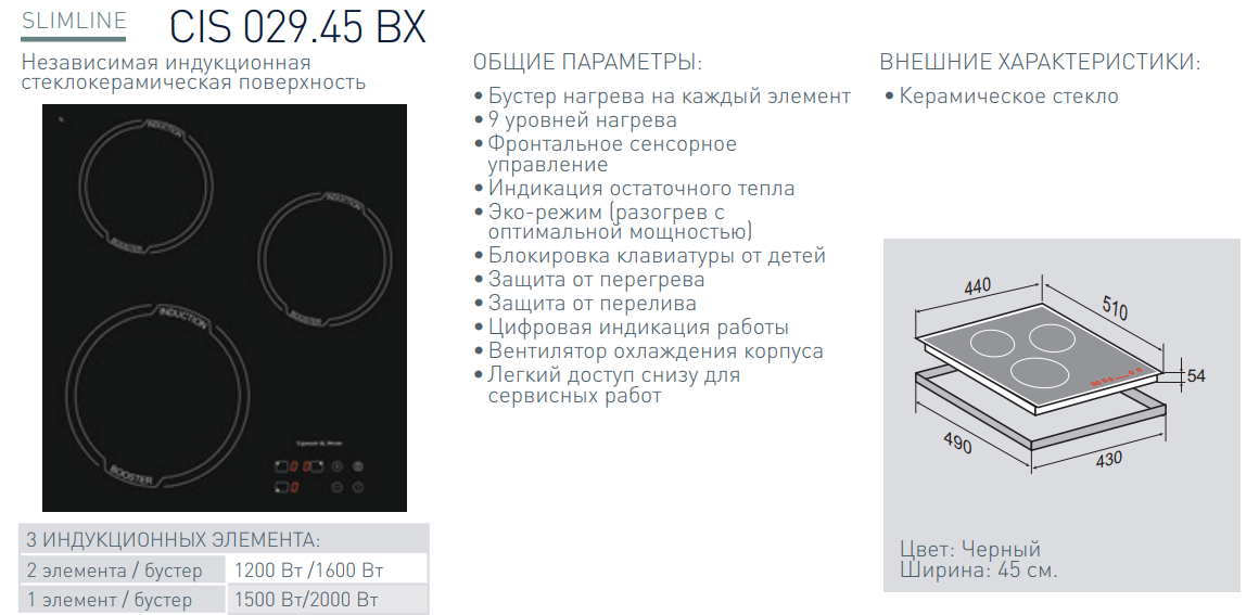 Индукционная варочная панель Zigmund-Shtain (Зигмунд-Штайн) CIS 029.45 BX