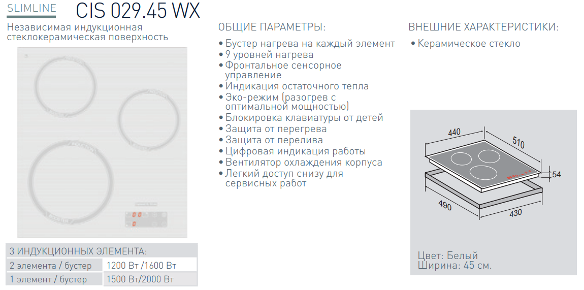 Индукционная варочная панель Zigmund-Shtain (Зигмунд-Штайн) CIS 029.45 WX