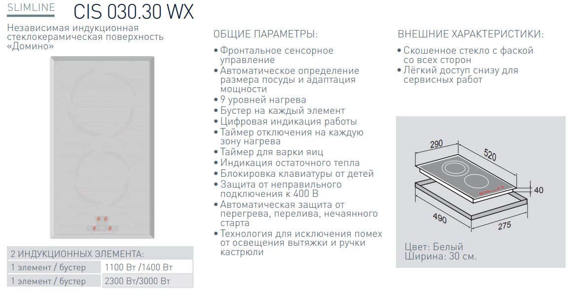 Индукционная варочная панель Zigmund-Shtain (Зигмунд-Штайн) CIS 030.30 WX
