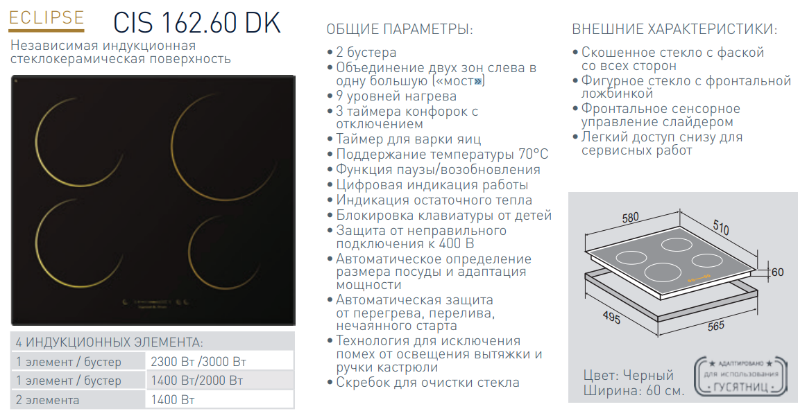 Индукционная варочная панель Zigmund-Shtain (Зигмунд-Штайн) CIS 162.60 DK