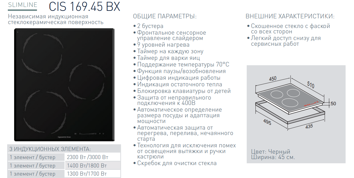 Индукционная варочная панель Zigmund-Shtain (Зигмунд-Штайн) CIS 169.45 BX