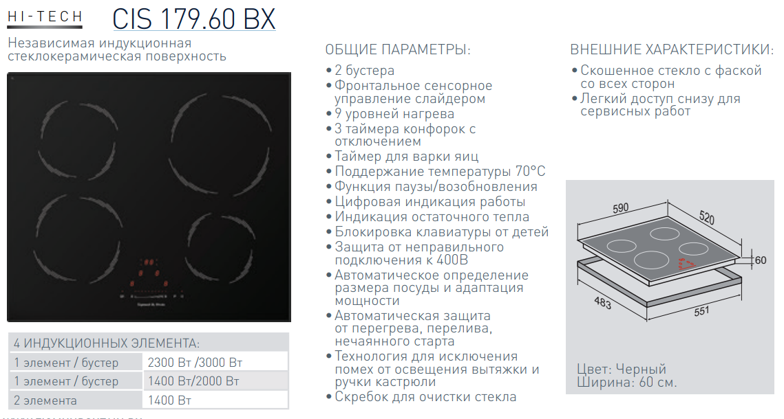 Индукционная варочная панель Zigmund-Shtain (Зигмунд-Штайн) CIS 179.60 BX