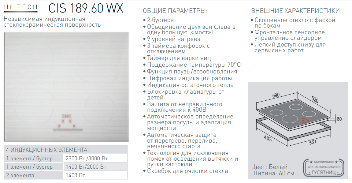 Индукционная варочная панель Zigmund-Shtain (Зигмунд-Штайн) CIS 189.60 WX
