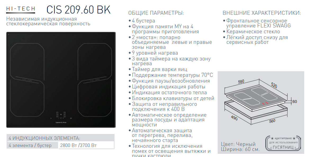 Индукционная варочная панель Zigmund-Shtain (Зигмунд-Штайн) CIS 209.60 BK