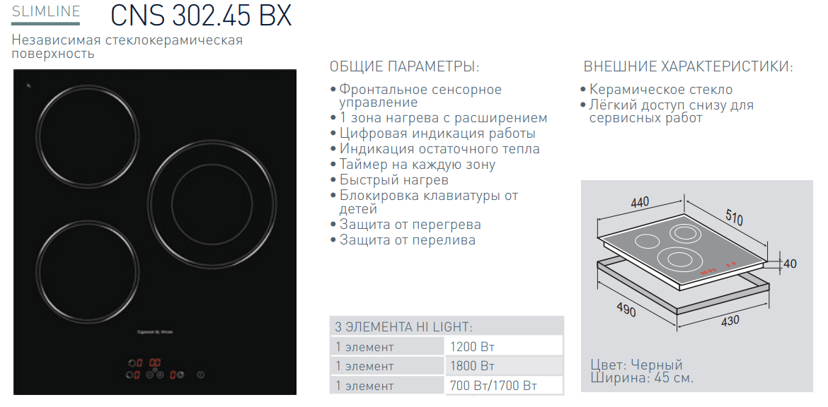 Электрическая варочная панель Zigmund-Shtain (Зигмунд-Штайн) CNS 302.45 BX