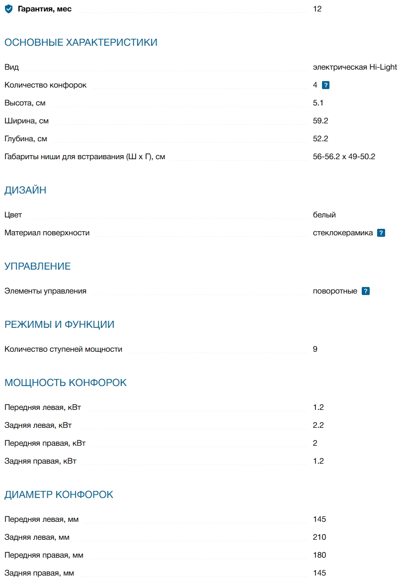 Конфорок индукционных |