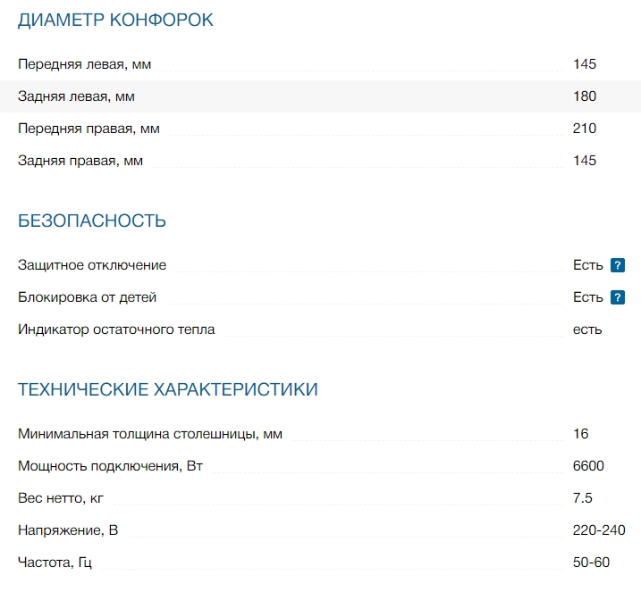 Конфорок индукционных |