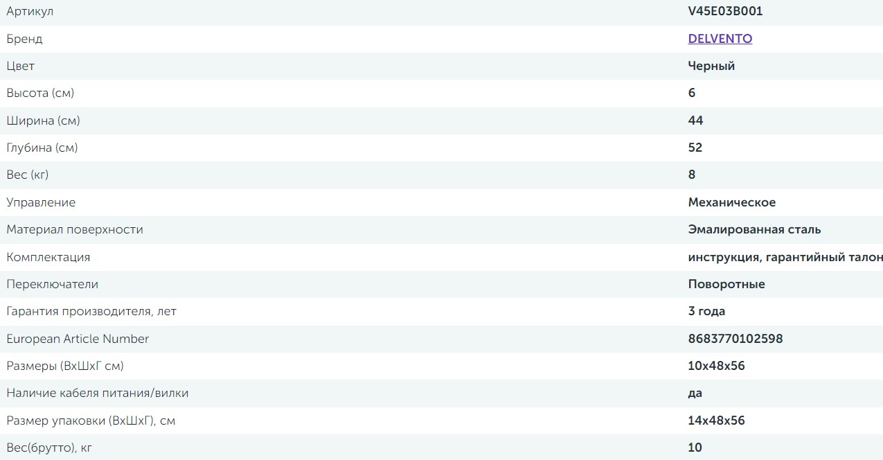 Электрическая варочная панель Delvento (Делвенто) V45E03B001
