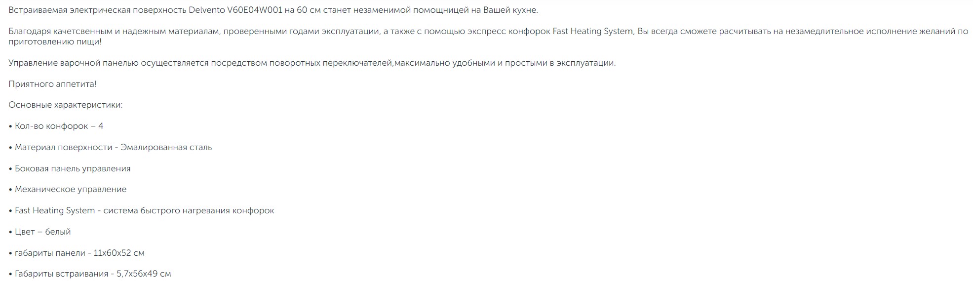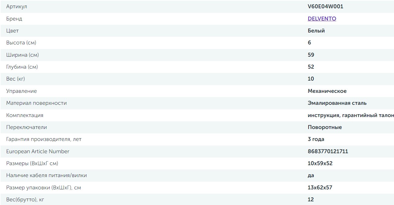 Электрическая варочная панель Delvento (Делвенто) V60E04W001