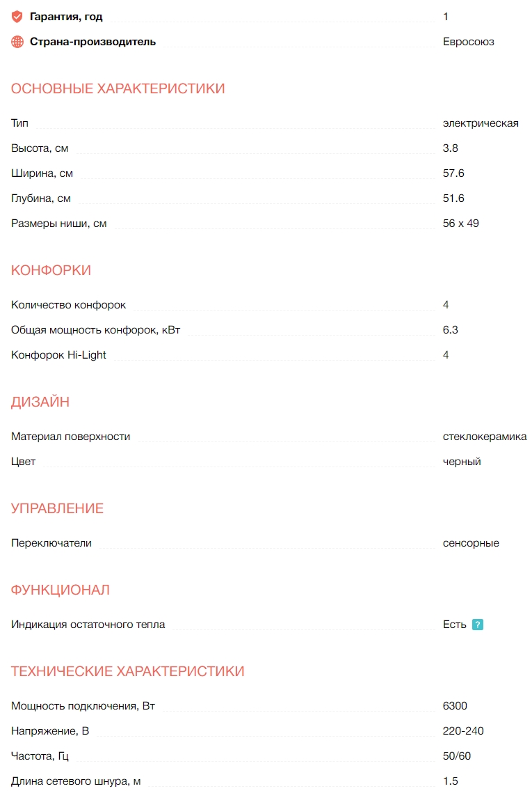 Конфорок индукционных |