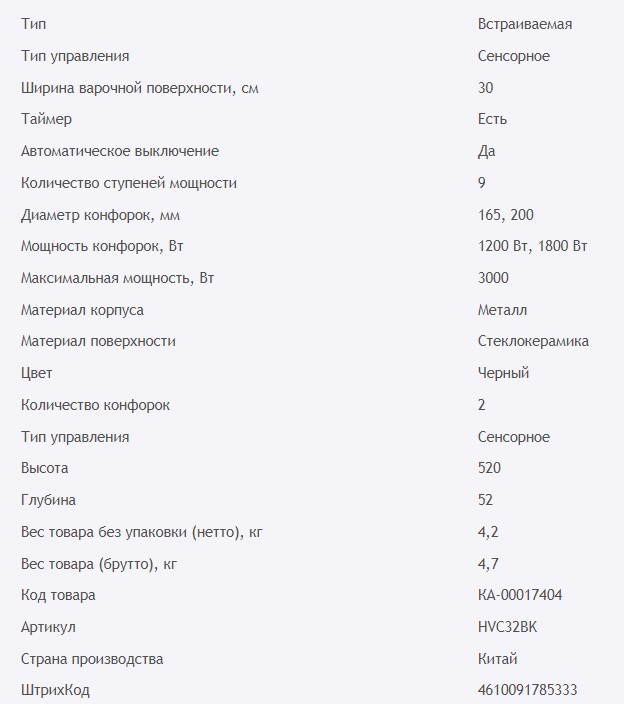 Электрическая варочная панель HOMSair (ХОМСэйр) HVC32BK