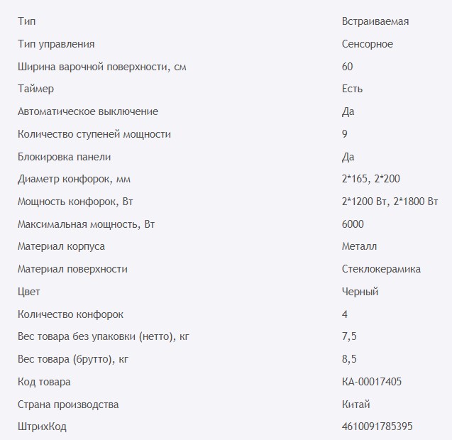 Конфорок индукционных |