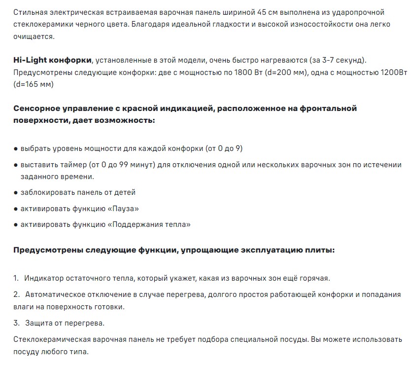 Конфорок индукционных |