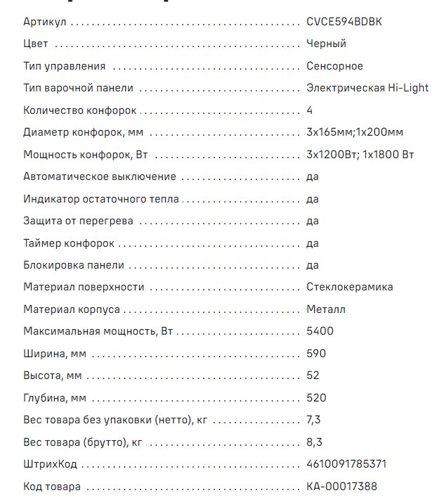 Электрическая варочная панель MAUNFELD (Маунфилд) CVCE594BDBK