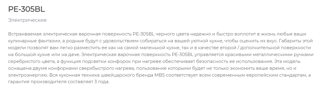 Электрическая варочная панель MBS PE-305BL