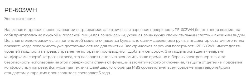 Электрическая варочная панель MBS PE-603WH