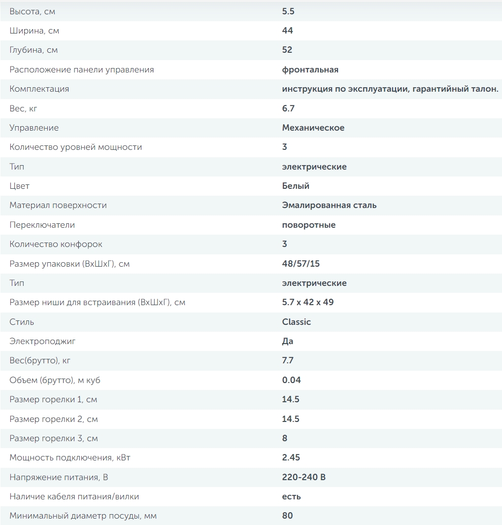 Конфорок индукционных |