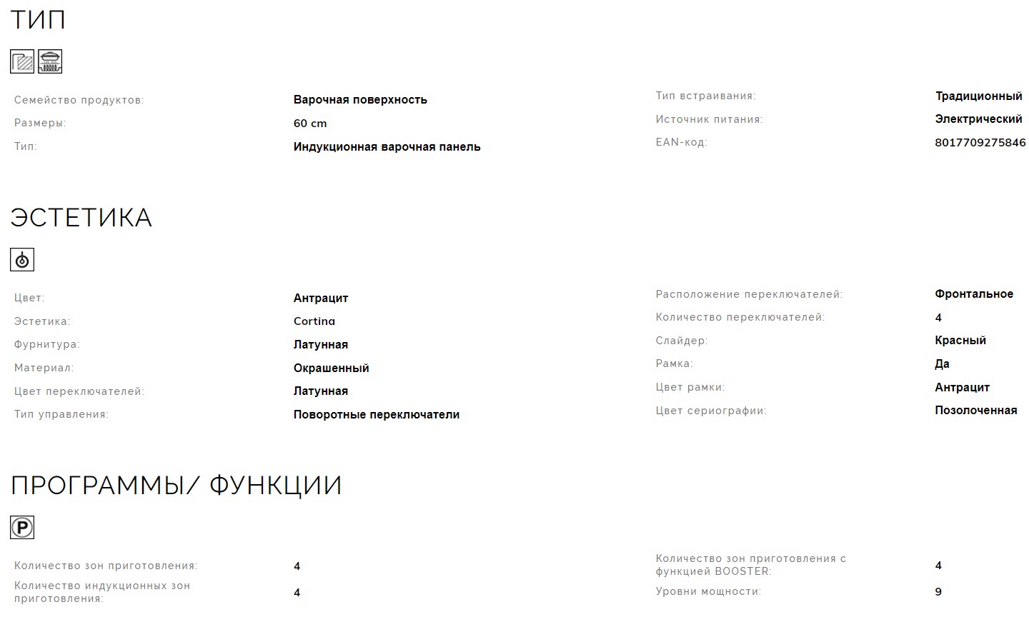Конфорок индукционных |