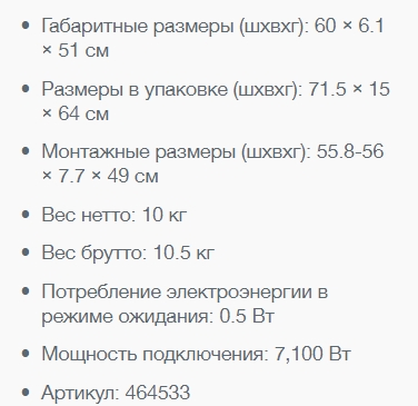 Ширина варочной