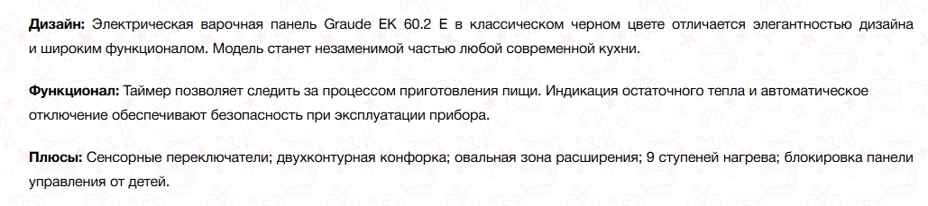 В продаже электрическая варочная панель Graude (Грауде) EK 60.2 E. В нашем интернет-магазине часто проводятся акции и распродажи, а значит купить эту модель EK 60.2 E можно недорого. На сайте есть цены, фото, характеристики и отзывы о товарах. Если не знаете, где и как купить Graude EK 60.2 E свяжитесь с нами по указанным на сайте контактам. Доставка по всей России! Оплата по факту получения и после проверки товара возможна по следующим городам: Москва, Санкт-Петербург, Нижний Новгород, Калуга, Тула, Тверь, Рязань, Воронеж! | |